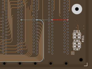 Both +12V & -12V on the opamp are good, so that’s not the problem. Replaced both 220uF caps (they were placed in wrong polarity, silkscreen is not good on the A4000 rev D). By replacing those two caps the problem still existed, so removed the next thing to go.. C403.. Ahhh… that’s the problem..