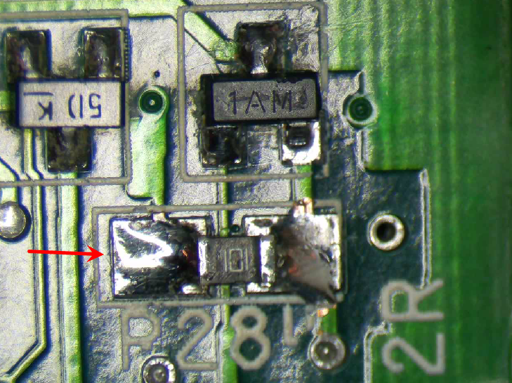 Let’s see if I remove R284. Signal still the same, but… Resistance of R284 is 0 – 0,1Ohm, hmm that should be 100Ohm, let’s replace it and test again.
